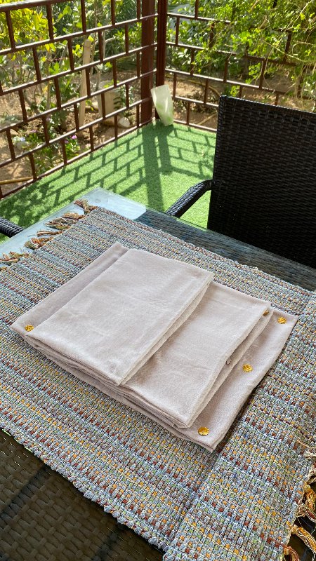 نص ترمه ساده قماش ناعم وخفيف على الراءس تتوفر بمقاسات ٥٥و ٤٨
